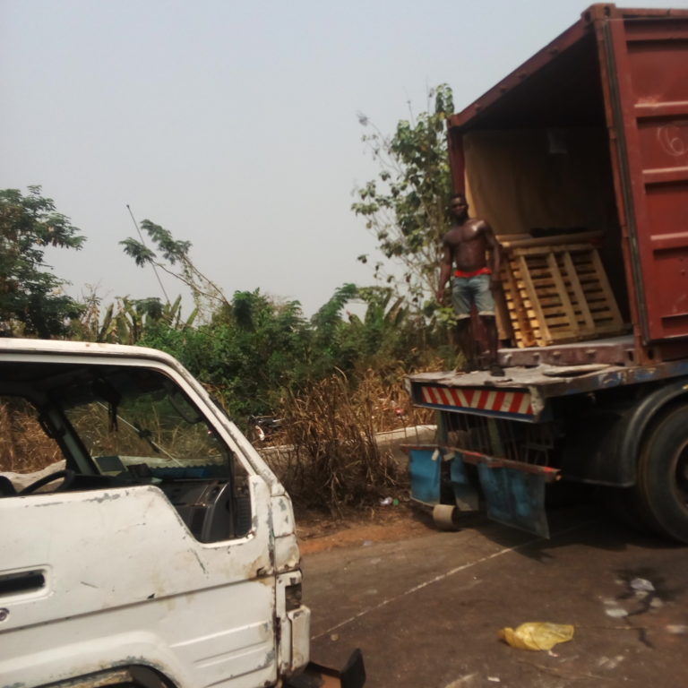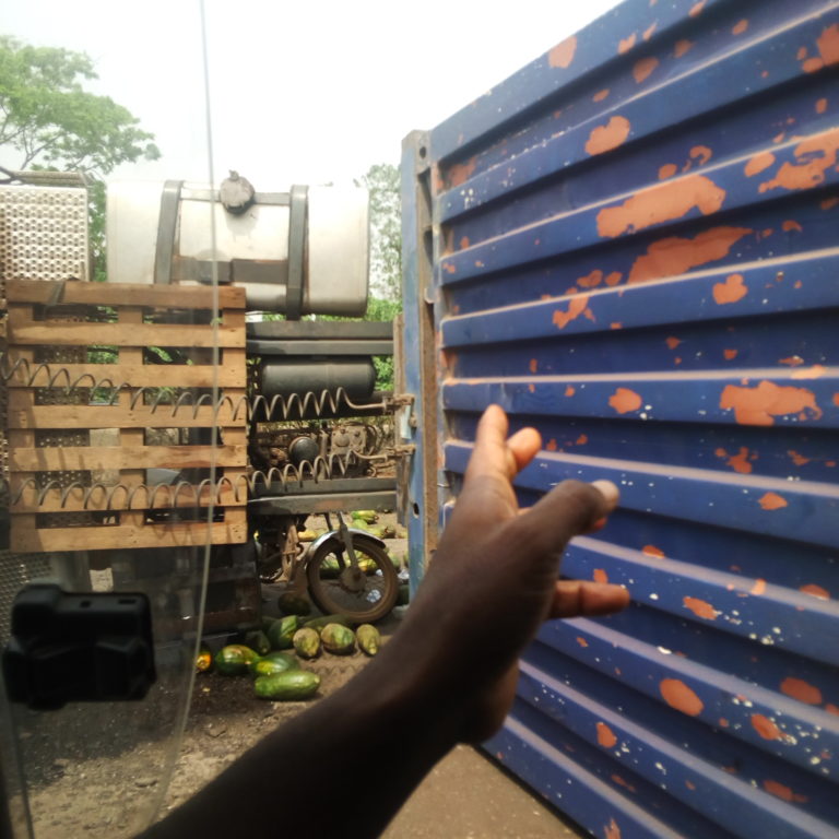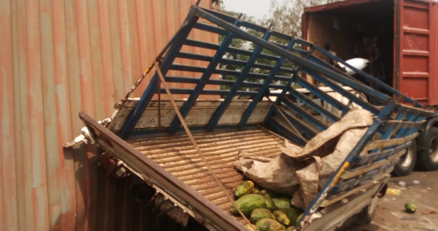 The trucks were laden with bags of flours while the other pick-up truck was carrying papaws.
